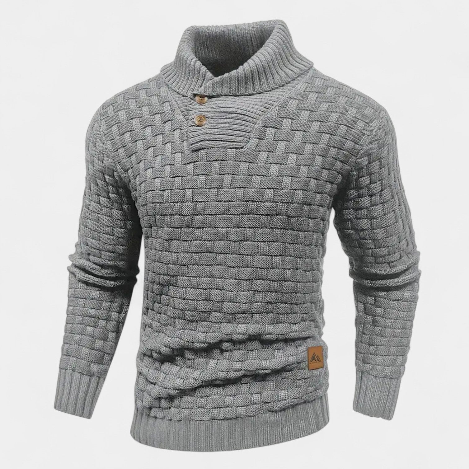 Svetr Elías představuje dokonalé spojení elegance a komfortu. Jeho originální vzor pletení a rolák se dvěma ozdobnými knoflíky dodávají charakter a styl, zatímco jemný úplet zajistí teplo i v chladnějších dnech. Ideální volba pro muže, kteří chtějí působit upraveně a zároveň se cítit pohodlně – ať už v práci nebo ve volném čase.